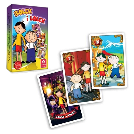 - Kolorowe karty ozdobione są wizerunkami bajkowego Bolka i Lolka