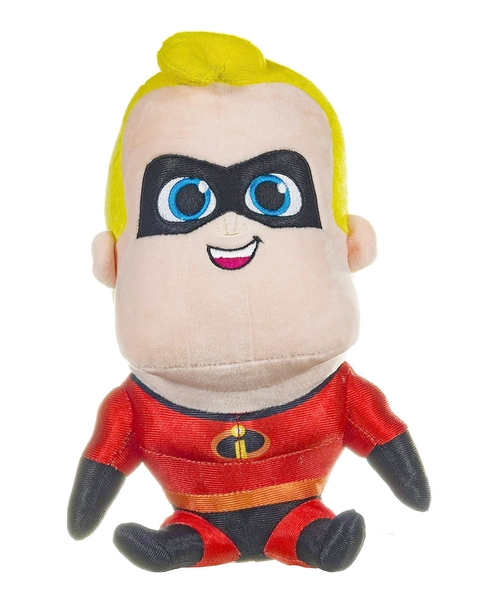 Pluszowy Robert "Bob" Parr - Pan Iniemamocny wygląda jak wyjęty z bajki. Ma dużą główkę wykonaną z miękkiego i przyjemnego w dotyku pluszu, wyszywane oczy i maskę oraz czerwono-czarny kostium z gładkiej, połyskującej tkaniny. Stabilizujący groszek w pupie zabawki, umożliwia ustawienie jej w pozycji siedzącej.