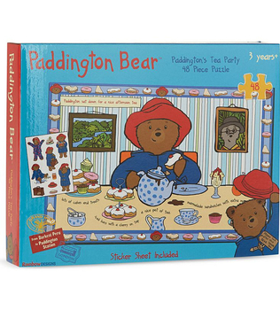 Klasyczne puzzle z bohaterem Misiem Paddingtonem: 48 elementów, w zestawie arkusz z naklejkami. Producent: Rainbow Designs.