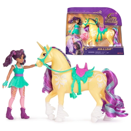 - Zestaw bohaterów: Laleczka Ava o ruchomych elementach oraz jednorożec Leaf z piękną grzywą do stylizacji.