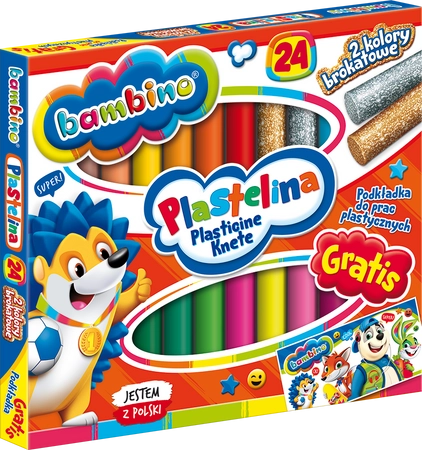 Bambino, Plastelina 24 kolory w tym 2 brokatowe