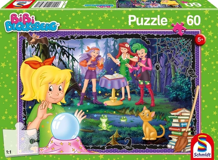 Bibi Blocksberg, Bibi i Tina, Puzzle dla dzieci, Bibi z przyjaciółkami i czarodziejska kula, 60 el. obrazek o wymiarach 36 x 24 cm, wiek 5+