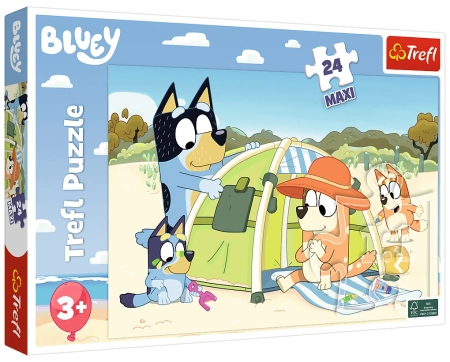 Bajkę o przygodach niebieskiej suczki Bluey zna każde dziecko. Bluey mieszka w domu z mamą, tatą oraz młodszą siostrą Bingo. Codziennie uczy się nowych rzeczy, przeżywa nowe perypetie. Puzzle maxi od firmy Trefl z motywem Bluey to doskonały pomysł na prezent dla małego wielbiciela psich bohaterek. Puzzle rozwijają wyobraźnię, ćwiczą koncentrację oraz małe dziecięce rączki. Puzzle są przeznaczone dla dzieci od 3 roku życia. Wysoka jakość wykonania układanki sprawi, że twoje dziecko długo będzie cieszyć się czasem spędzonym nad puzzlami. Puzzle maxi Bluey są duże, dzięki czemu łatwo je ułożyć. Po ułożeniu tworzą obrazek o wymiarach 60 x 40 cm. Do produkcji puzzli użyto materiałów pochodzących z recyklingu oraz nadających się do ponownego przetworzenia. Opakowanie zawiera 24 puzzle.