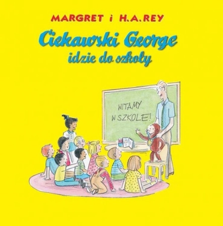 Ciekawski George, Książka z ilustracjami Ciekawski George idzie do szkoły, Margret Rey, H.A. Rey, miękka oprawa, 24 str., format: 19.5 x 19.5 cm