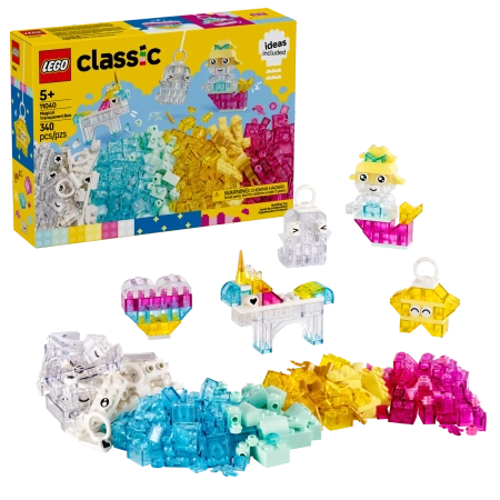 LEGO Classic Magiczny zestaw z przezroczystymi klockami (11040) gwarantuje kreatywną zabawę, która będzie trwać w nieskończoność. Ten zestaw do budowania i ozdoby składa się z 340 kolorowych klocków, z których wiele jest przezroczystych, a także z wielu elementów specjalnych. Inspiruje on dziecięcą kreatywność czarującymi modelami i niekończącą się, pomysłową zabawą.
