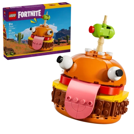 Zestaw inspirowany grą LEGO Fortnite umożliwia fanom zbudowanie modelu burgera Durrr Burgerowni, kultowej maskotki restauracji ze świata Fortnite. Młodzi gracze będą mieć mnóstwo frajdy, budując model, a potem poznając jego ekscytujące detale, takie jak kultowe oczy, język i oliwka na wykałaczce.