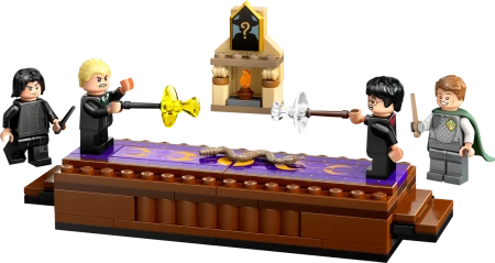 - Zestaw do magicznej zabawy — ta zabawka konstrukcyjna zawiera kominek oraz zdobioną platformę bitewną z funkcją przewracania minifigurki (naciśnij stopnie na jednym z końców, aby przewrócić przeciwnika)