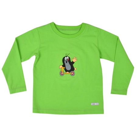 Zielona dziecięca koszulka z długim rękawem z bajki Krecik to oryginalny produkt licencyjny od czeskiej firmy MU Brno. T-shirt został wykonany z tkaniny z nano srebrem. "Oddychający" materiał wyróżnia się działaniem przeciwbakteryjnym, przeciwgrzybicznym, przyspieszającym gojenie drobnych zadrapań. Chroni przed nadmiernym poceniem i jest wyjątkowo komfortowa w noszeniu.