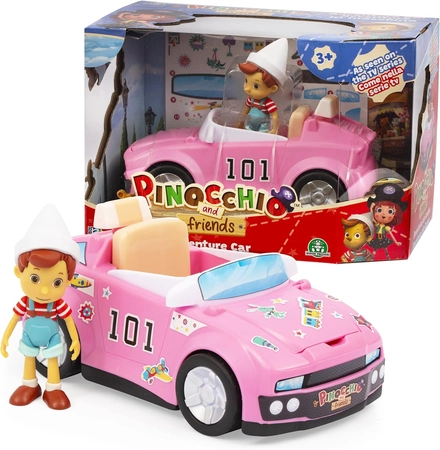 Pinokio i przyjaciele, Samochód i figurka Pinokio, kabriolet z otwieranym bagażnikiem, pojazd można okleić naklejkami, zabawka dla dzieci w wieku 3+