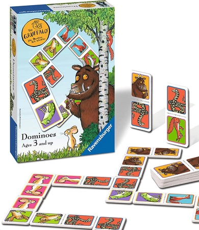 Domino obrazkowe to popularna gra, polegająca na dopasowywaniu elementów prezentujących ten sam obrazek. Wygrywa gracz, który jako pierwszy pozbędzie się swoich elementów poprzez dokładanie ich do ich odpowiedników znajdujących się już na stole. Domino z bajki Gruffalo przeznaczone jest przede wszystkim dla dzieci. Kolorowe ilustracje nawiązujące do bajki z pewnością zachęcą najmłodszych do zabawy. Zestaw zawiera 28 elementów i pozwala na rozgrywkę między grupą od 2 do 4 osób. Grę stworzyła, na oryginalnej licencji, niemiecka firma Ravensburger. Produkt doskonale sprawdzi się jako gra towarzyska dla dzieci, dzięki której będą świetnie bawić się z rodziną czy kolegami i koleżankami.