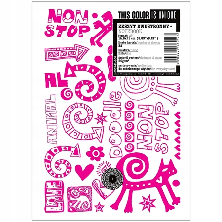 Zeszyt 32-kartkowy w kratkę od wydawnictwa Ziemia Obiecana wyróżnia się tym, że jest to zeszyt dwustronny. Obie strony okładki mogą być "frontem", a zeszyt można zapisywać z dwóch stron jednocześnie. Funkcja ta pozwala dzielić notatki szkolne na dwie części, co pomaga w nauce i organizacji zapisków. Zeszyt ma klasyczny format A5 i jest zadrukowany kratką z praktycznymi marginesami. Okładka z nowoczesnym wzorem "bazgrołów" przypadnie do gustu dzieciom i nastolatkom.