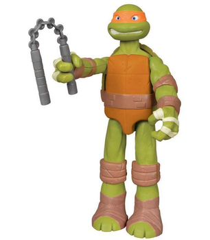Zestaw składa się z figurki Mikey'a z pomarańczową maską – bandaną i jego broni w postaci nunchaku, dzięki którym mały smyk może ze swoim ulubionym bohaterem przenieść się w krainę wyobraźni i zadawać ciosy czarnym charakterom. Świetna zabawa gwarantowana! Zabawka wykonana jest z wysokogatunkowego plastiku z dużą dbałością o detale.
