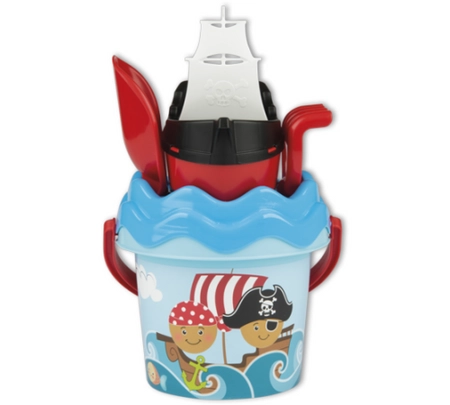 Oferowany zestaw doskonale sprawdzi się jako prezent dla małych fanów tematyki pirackiej. Znajdujące się w komplecie zabawki będą przydatne zarówno w piaskownicy, jak i na plaży. Wyróżnia je wysoka jakość tworzywa: gładkie, dobrze wyprofilowane, bezpieczne. Uwagę przyciąga także ciekawa, kontrastująca kolorystyką. Komplet zabawek do piasku dla chłopców to niezbędny element letniego wyposażenia.