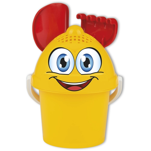 Ten wyjątkowy komplet ma soczysty żółty kolor i składa się z wiaderka, pokrywki będącej jednocześnie sitkiem, grabek i łopatki. Rozmiarem idealnie dopasowany jest do małych dzieci: 1-2 latka.