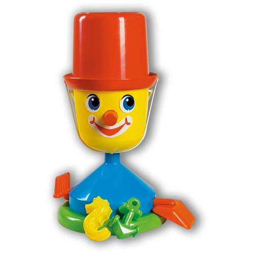 Zestaw zabawek do piasku Żołnierzyk to osiem elementów, które po złożeniu tworzą wesołą postać. Gdy zabawki zostaną rozłożone, dzieci znajdą dwa wiadereczka w tym jedno z noskiem pełniącym funkcję sitka, duży lejek, duże sitko, grabki, łopatkę i dwie foremki.
