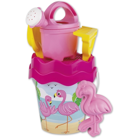 Androni, Zabawki do piaskownicy Flaming - wiaderko, łopatka, foremki 46, wyprodukowane we Włoszech, prezent dla dziewczynki, dobra jakość plastiku