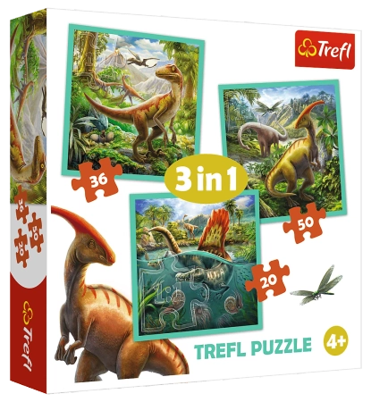 Trefl, Puzzle dla dzieci 3-w-1 Dinozaury 20-36-50 el.